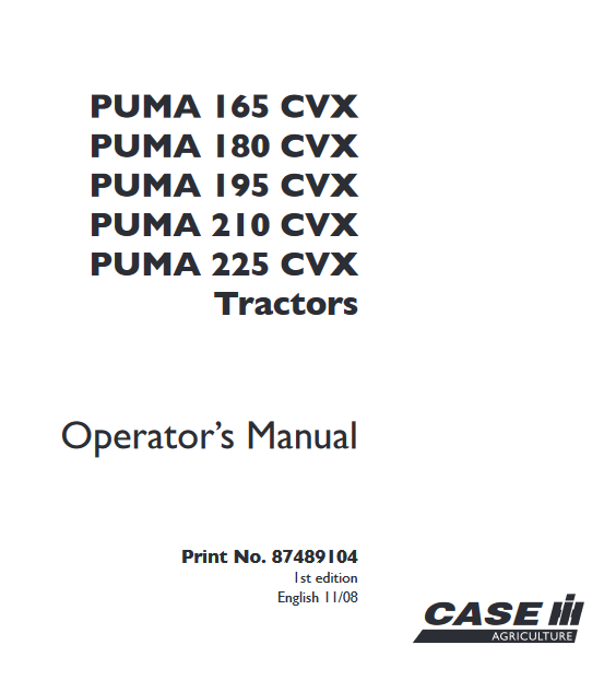 Case IH Puma CVX 165 180 195 210 225 Operators Manual